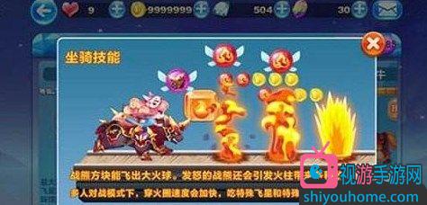 地心战熊的多人技能效果和单人模式有所不同,第一,踩到战熊方块能飞出大火球,简单的说就是高能飞币;第二,发怒时会带来各种收益,也就是把钱币变成火球金币和特殊飞币;第三,钻火圈加速,这是其核心技能,靠这个就能硬刚白龙马的巨化接加速带。