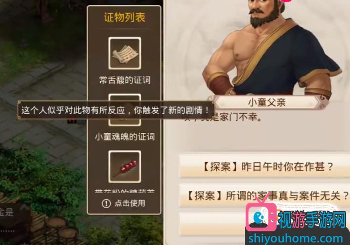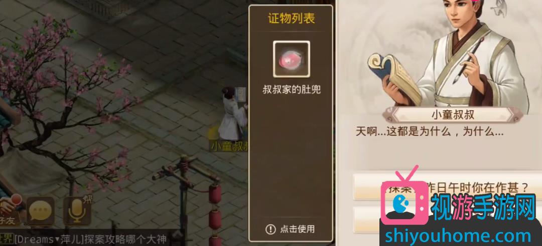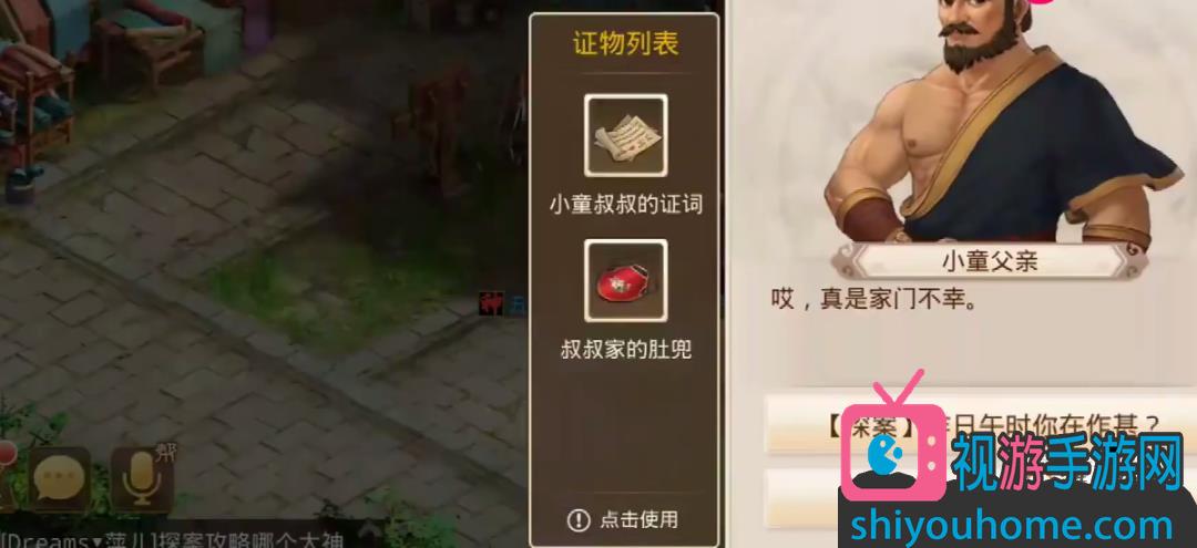06之后我们去找小童叔叔询问,再去他身后的屋子里面去,得到叔叔家的肚兜,出去对小童叔叔使用,得知小童叔叔与小童母亲有染。得到小童叔叔的证词。