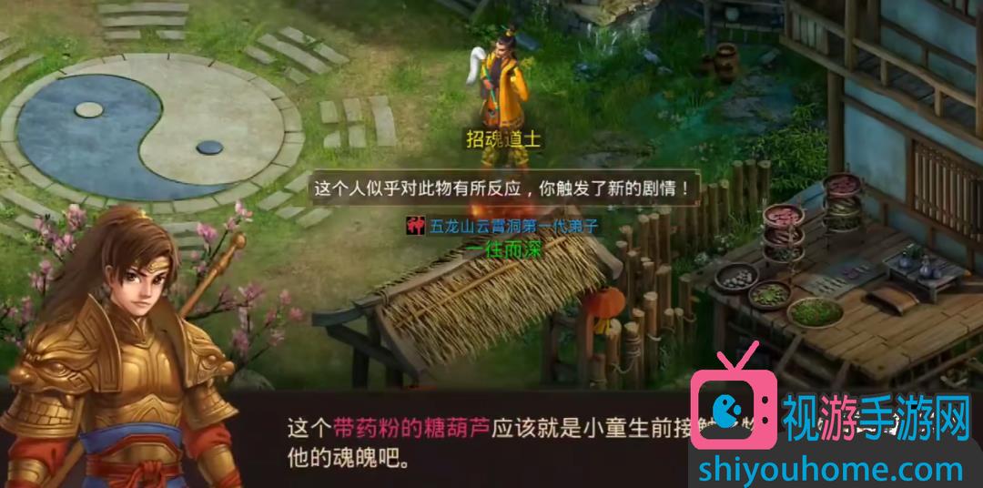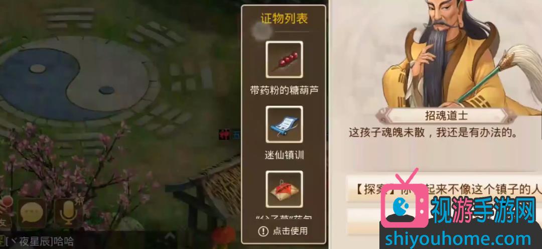 10之后我们再次点击出现的对话。然后我们去找招魂道士,使用带药粉的糖葫芦,再次点击招魂道士,招魂小童。然后我们去找小童,得到小童魂魄的证词。