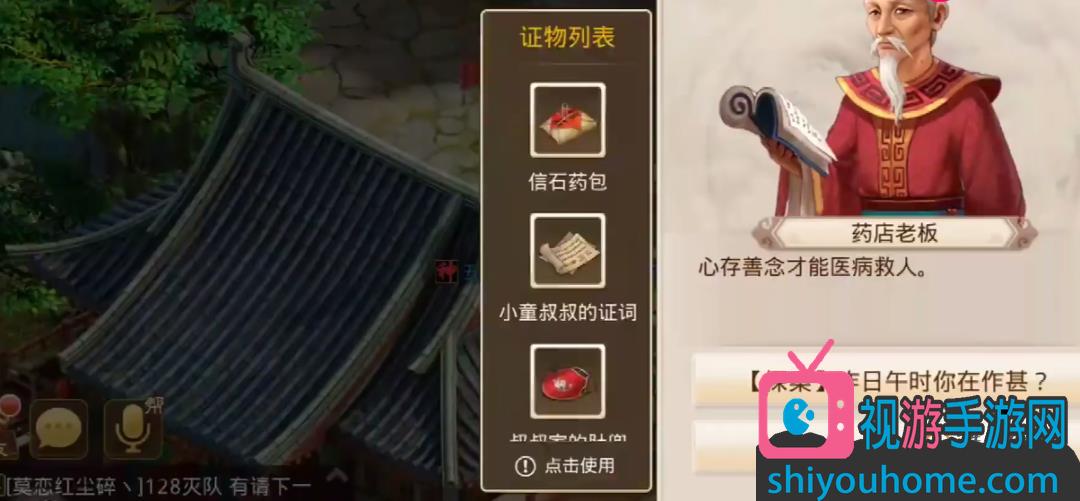 07再去询问小童父亲,然后按照地图顺序再去找常舌馥询问,之后去身后屋子得到信石药包。