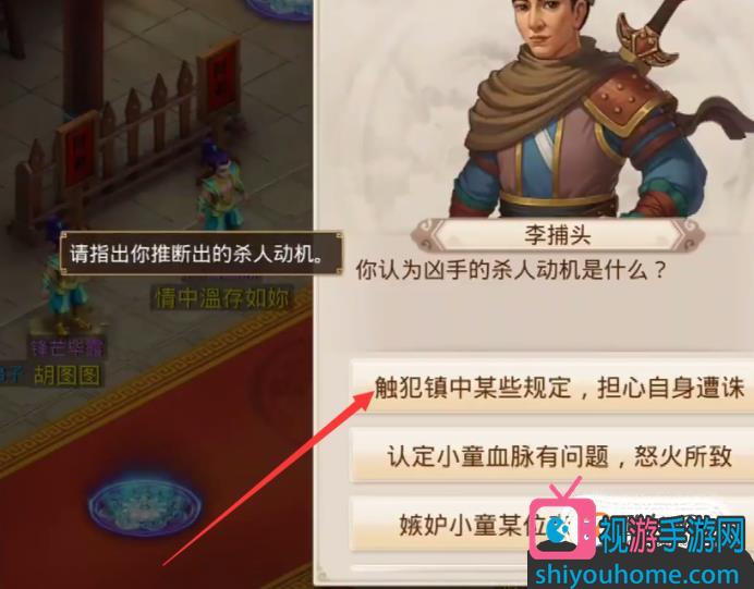 凶手的杀人动机是:触犯镇中某些规定及担心自身遭诛;