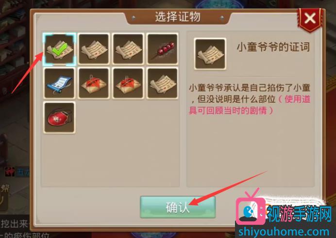 先点击“小童爷爷的证词”,再点击确认。