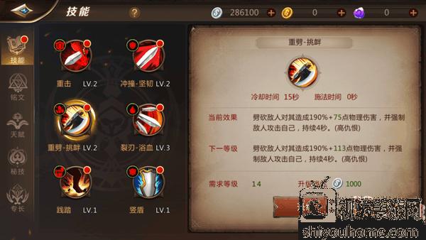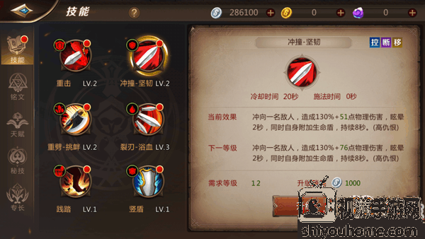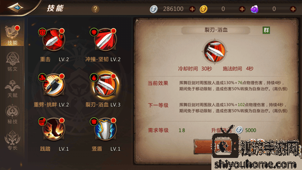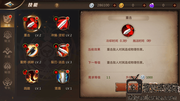 战士普通平砍技,提升技能等级提升平砍伤害。