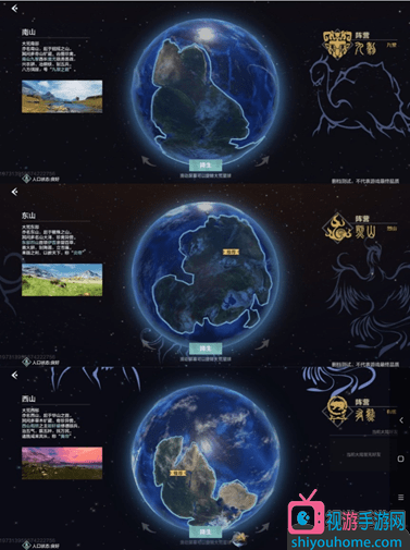 进入游戏之后,玩家需要选择降生地点,也就是之后房屋建造点。在妄想山海这款游戏中,主要分为四块大陆,对应三个阵营。即东山属烈山阵营;西山属有熊阵营;南山属九黎阵营;中山大陆则是混乱区不可安家,不同阵营的玩家以红名相见,胜者则可以掠夺中山上的稀有资源。每片大陆基础物资丰富且相似,玩家可依据喜好选择阵营。如果需要,可以随时搬家换阵营。