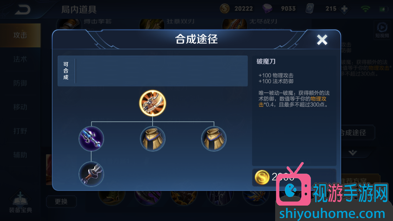 解析:这件装备现在的法术防御有着很大的加强,可以给玩家提供100点的法术防御,是刺客和战士很关键的一件装备。第一增加的攻击还是非常可观的,同时如果对面的法师发育很好但是又不想出肉小编建议直接出破魔刀,这样也有法抗加成,不容易死。