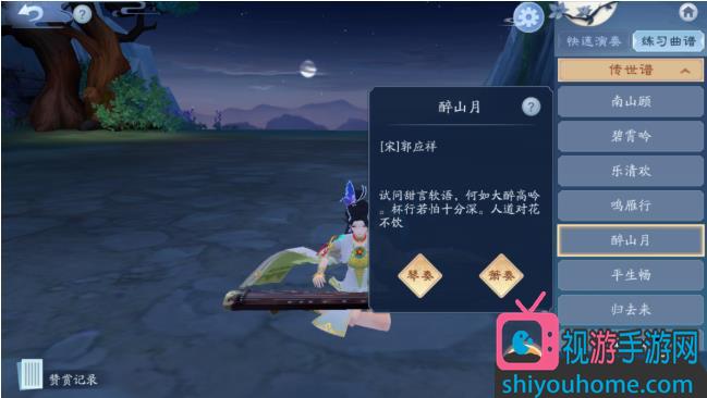 江歌:打开琴箫选择醉月山演奏全连触发任务;