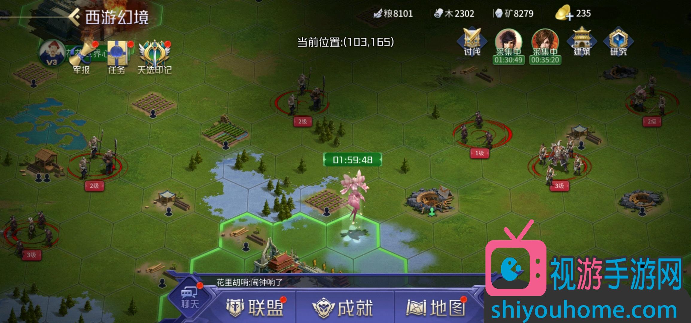 在各盟友视野内你可以刷怪、采集注:野怪三小时刷新一次,以零点为标准