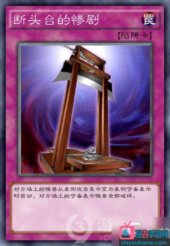效果:对方场上的怪兽从表侧攻击表示变为表侧守备表示时发动。对方场上的守备表示怪兽全部破坏。