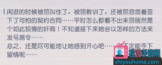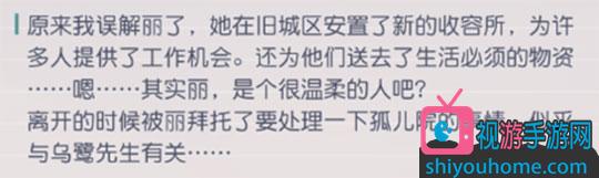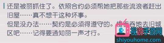 巡查旧城区,进入支线【旧城区的见闻】,完成后丽好感度增加20点
