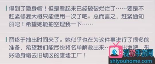 第三步:继续巡查旧城区,进入支线【偶遇?还是可以?】,完成后丽的好感度增加10点,手帐出现改变。