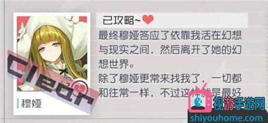 完成剧情后可回收穆娅CG,手帐中穆娅图标上出现Clear字样,穆娅攻略成功,支线完成。