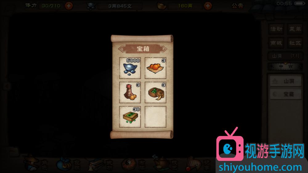 宝藏奖励内容:15点声望、5两、3洗髓丹、3六合丹、3经验丹和30灵虚丹。