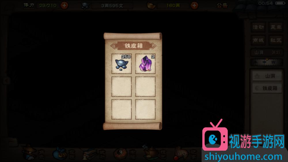 【温馨提示】山洞(8,2)还有一个铁皮箱,里面有2紫玉髓和500文