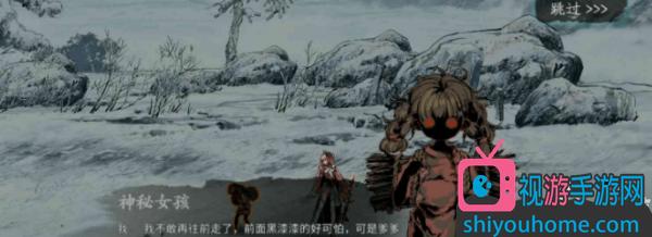 1、我们需要前往落鸦村的落鸦废墟,找到小女孩妞妞,与其对话,选择善意谎言