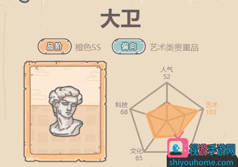 3、大卫置于米国博物馆,赋予效果:米国探索,15%概率获得双倍紫色卡片。