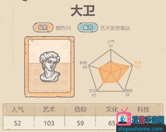 1、大卫置于米国博物馆,赋予效果:米国探索,15%概率获得双倍紫色炼金试剂;