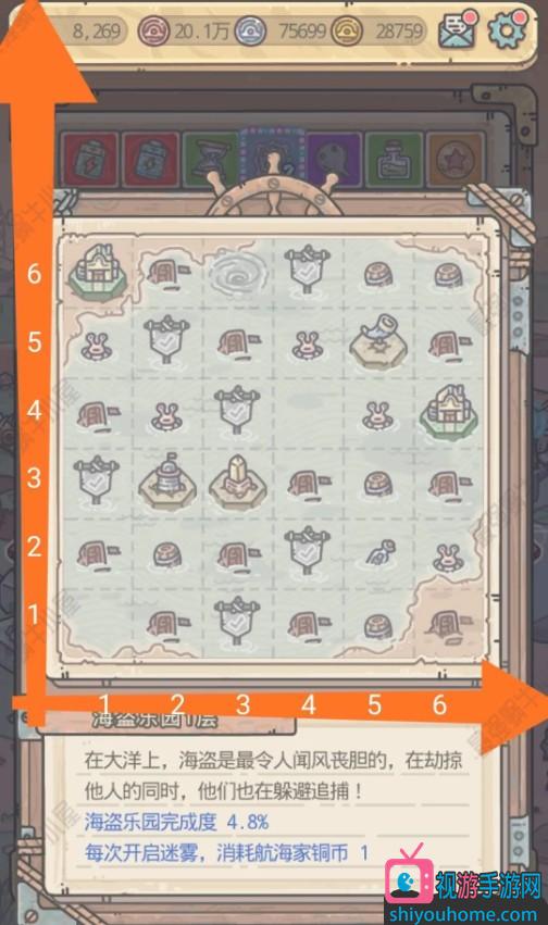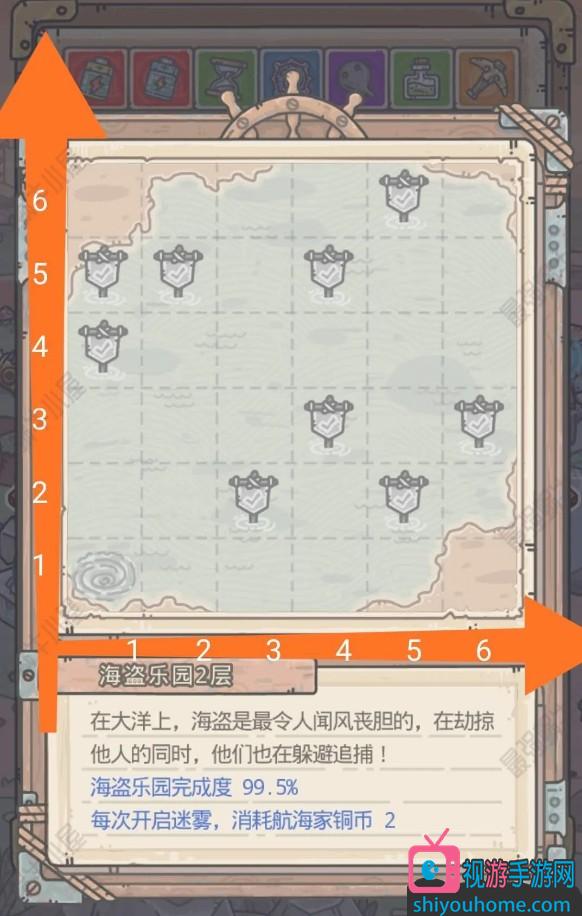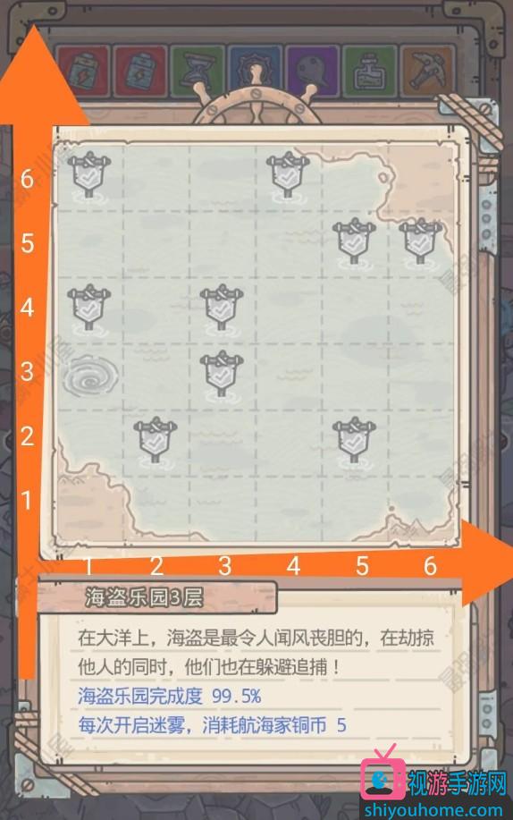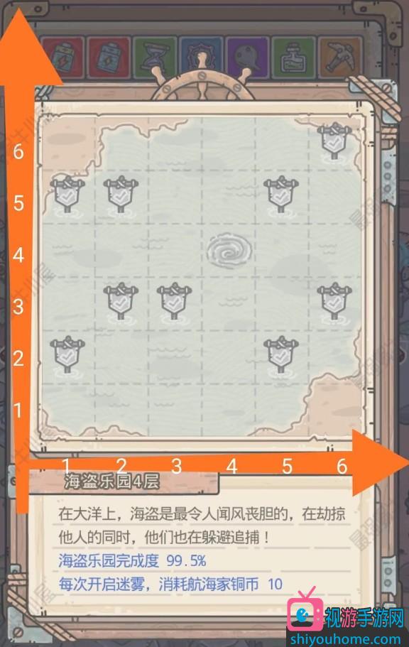 漩涡(3,6)在使用号角后,可以从此处进入下一层(会消耗固定数量水手)。
