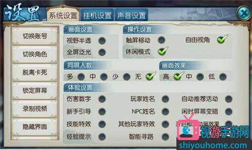 玩家姓名,NPC姓名,技能特效,其他玩家特效,触屏移动也不能勾选!