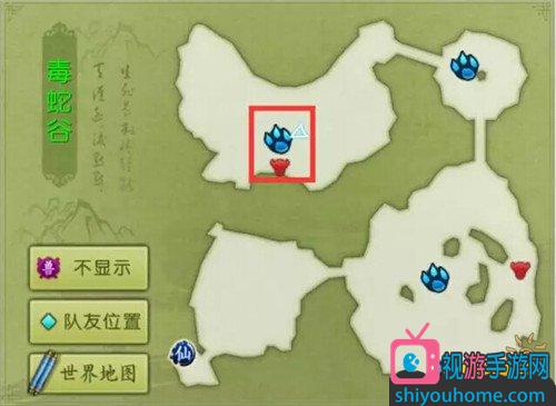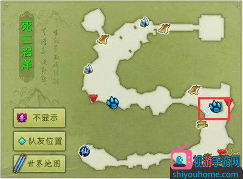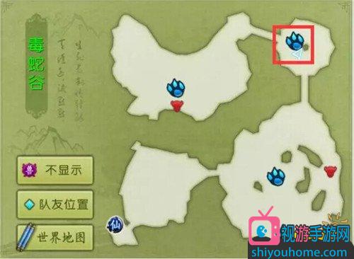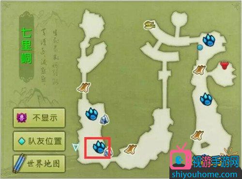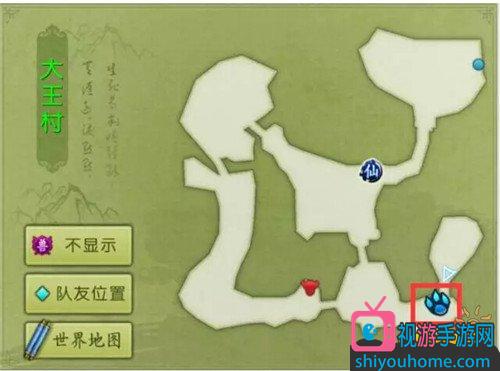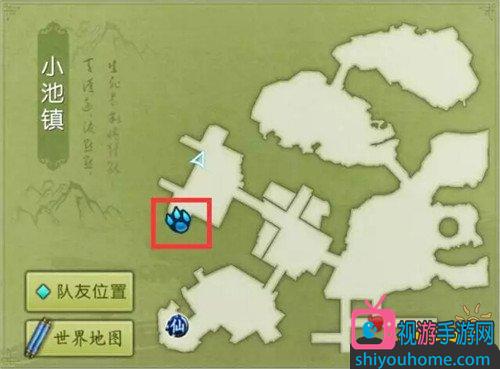2,通过右上角的地图传送过去,地图上有爪子的地方就是我们的目的地!