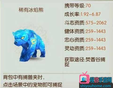 稀有冰焰熊获取方法与其他稀有宠物获取方法一样,可以在野外捕捉获得,也可以通过购买获得。